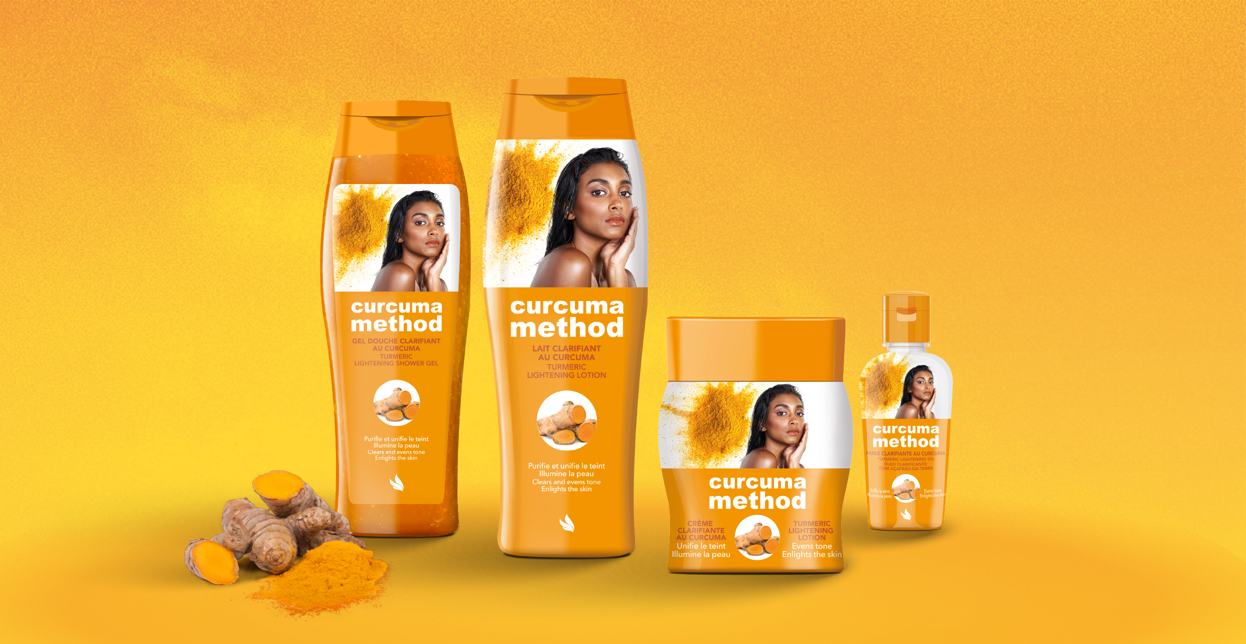 Curcuma Method est une gamme de soins activateurs d’éclat adaptés aux peaux en manque de luminosité et d’uniformité.